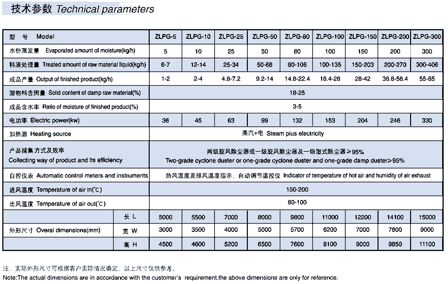 - 塔徑塔高作了相應(yīng)的調(diào)整,既保證粉料干燥之前達(dá)到不到塔壁,又可保證粉料的熱風(fēng)停留時(shí)間而完成低溫干燥;它比設(shè)有加套冷風(fēng)冷卻裝置,確保料液不會(huì)粘結(jié)在塔壁上因局部溫度過高而產(chǎn)生軟化、熔融甚至焦化現(xiàn)象;錐度增大,錐體上安裝空氣震擊器,用壓縮空氣脈沖式地震擊筒體,把吸附在筒體上的粉料順暢地?fù)袈湎聛恚?